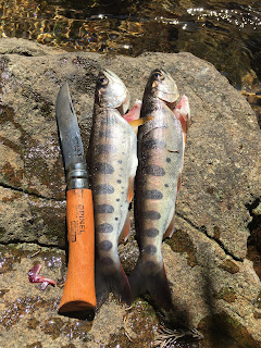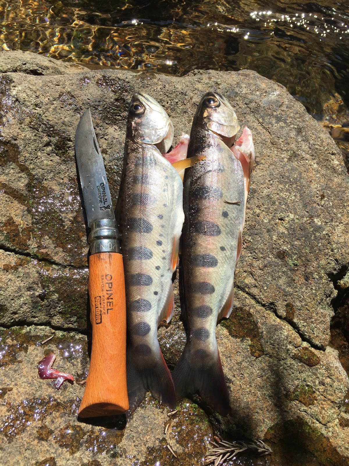 その日の晩は2尾のアマゴ(燻製)と2尾のヤマメ(唐揚げ)を食卓に出し