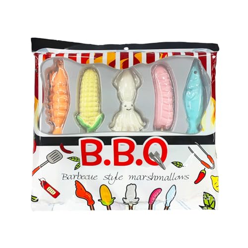 冷蔵庫に保管していたためちょっと曇ってますが、ダイソーのBBQマシュマロ イカです。