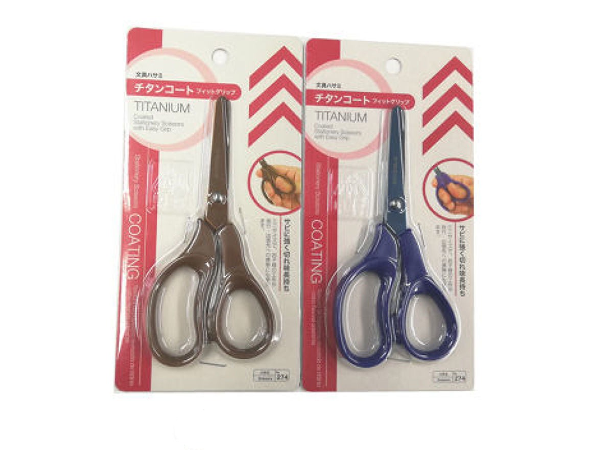 チタンコーティングシリーズはいくつか商品があり、事務用ハサミの他にもっと小さなタイプやさらに大きなもの、カッターナイフの刃もあります。