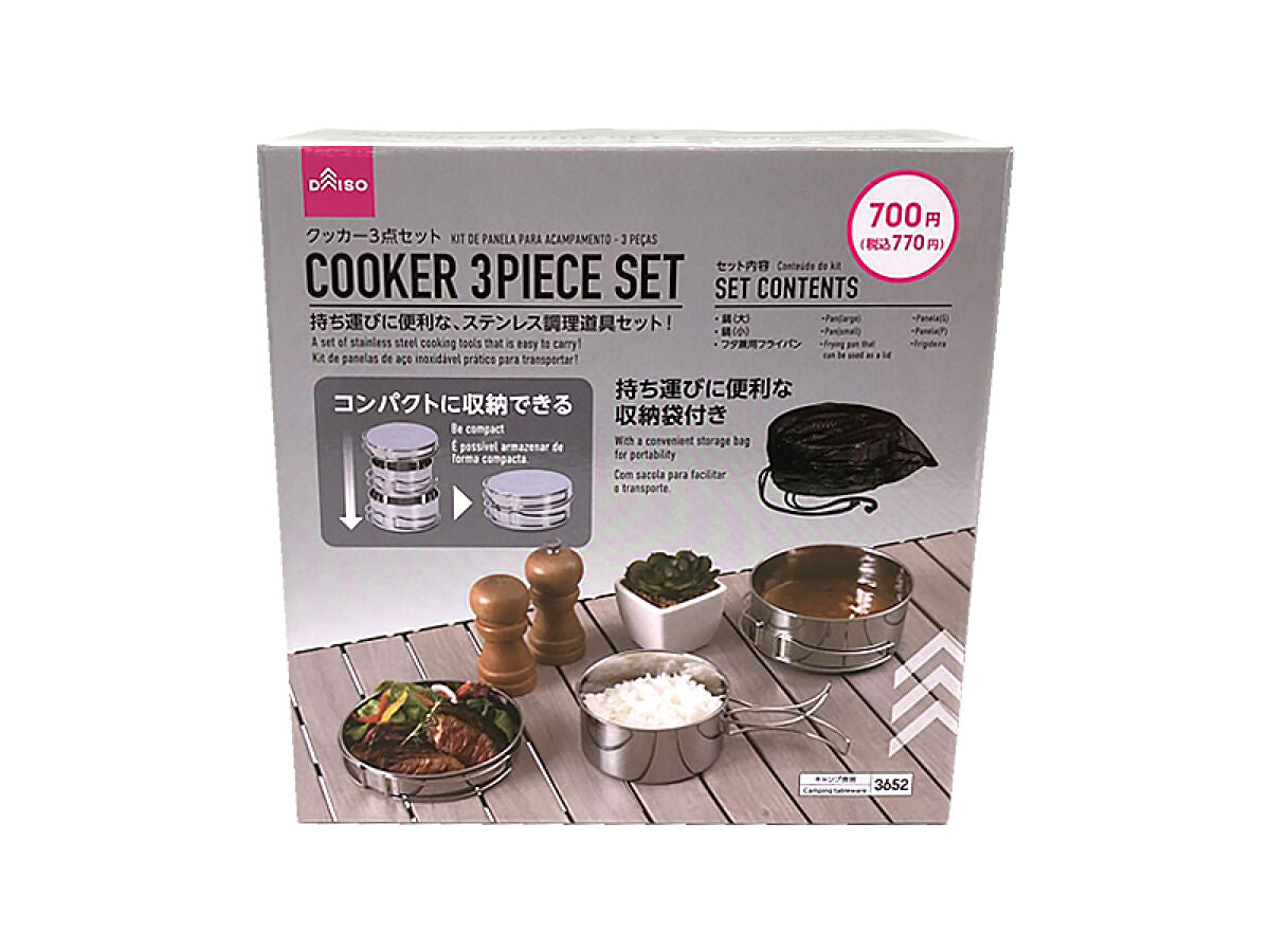 770円3点セットで売られているダイソークッカー。どちらを購入するか迷うなら、断然レジャークッカーがおすすめ。