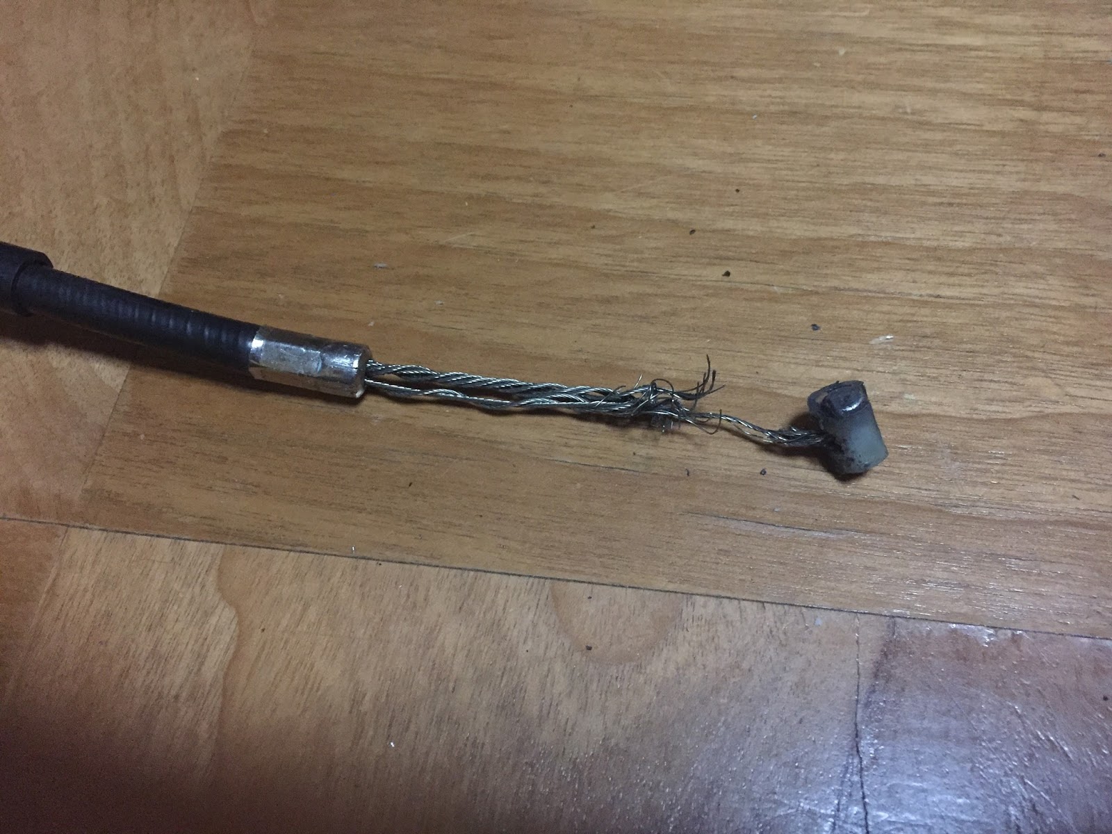 山の中で2度、クラッチが切りにく状況があったのですが、その都度調整でしのいでいました。単純にケーブルの伸びか緩みくらいに思っていたのですが、切れ掛かっていたのを見てホッとしました。