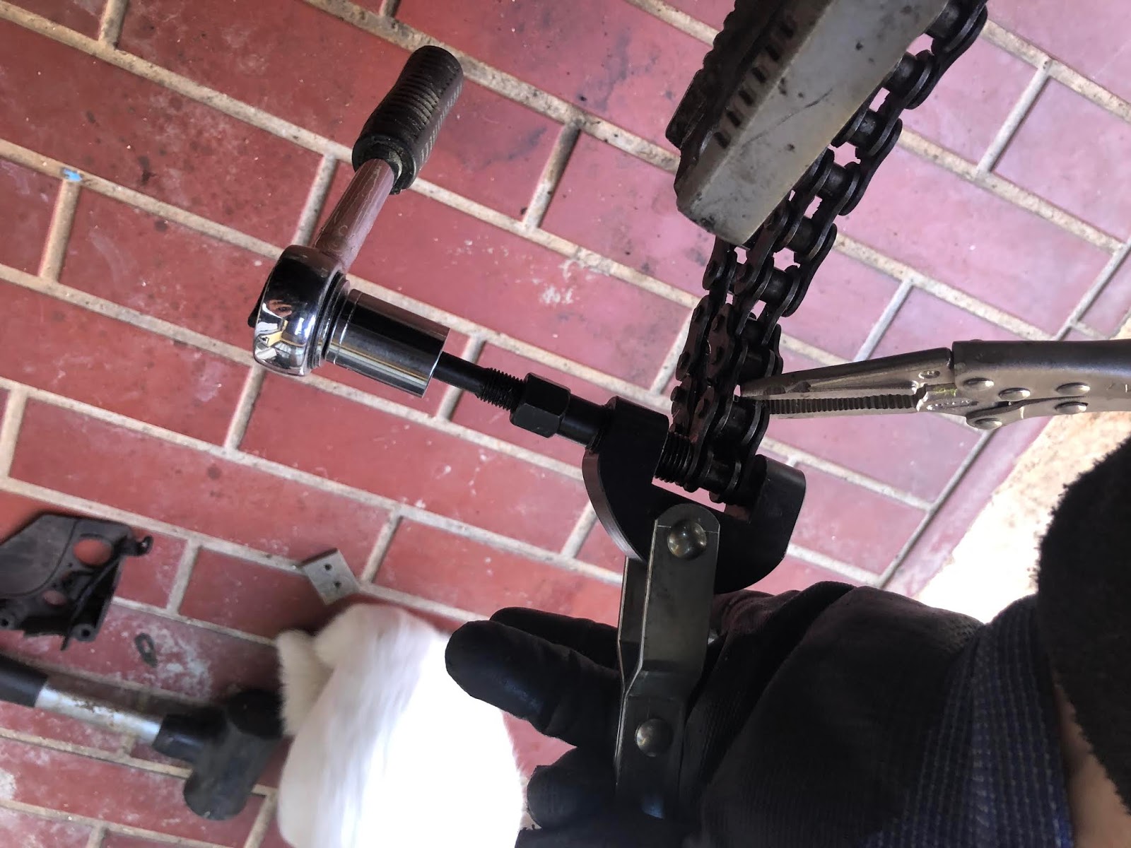 これがチェーンカッターでピンを抜いている写真。