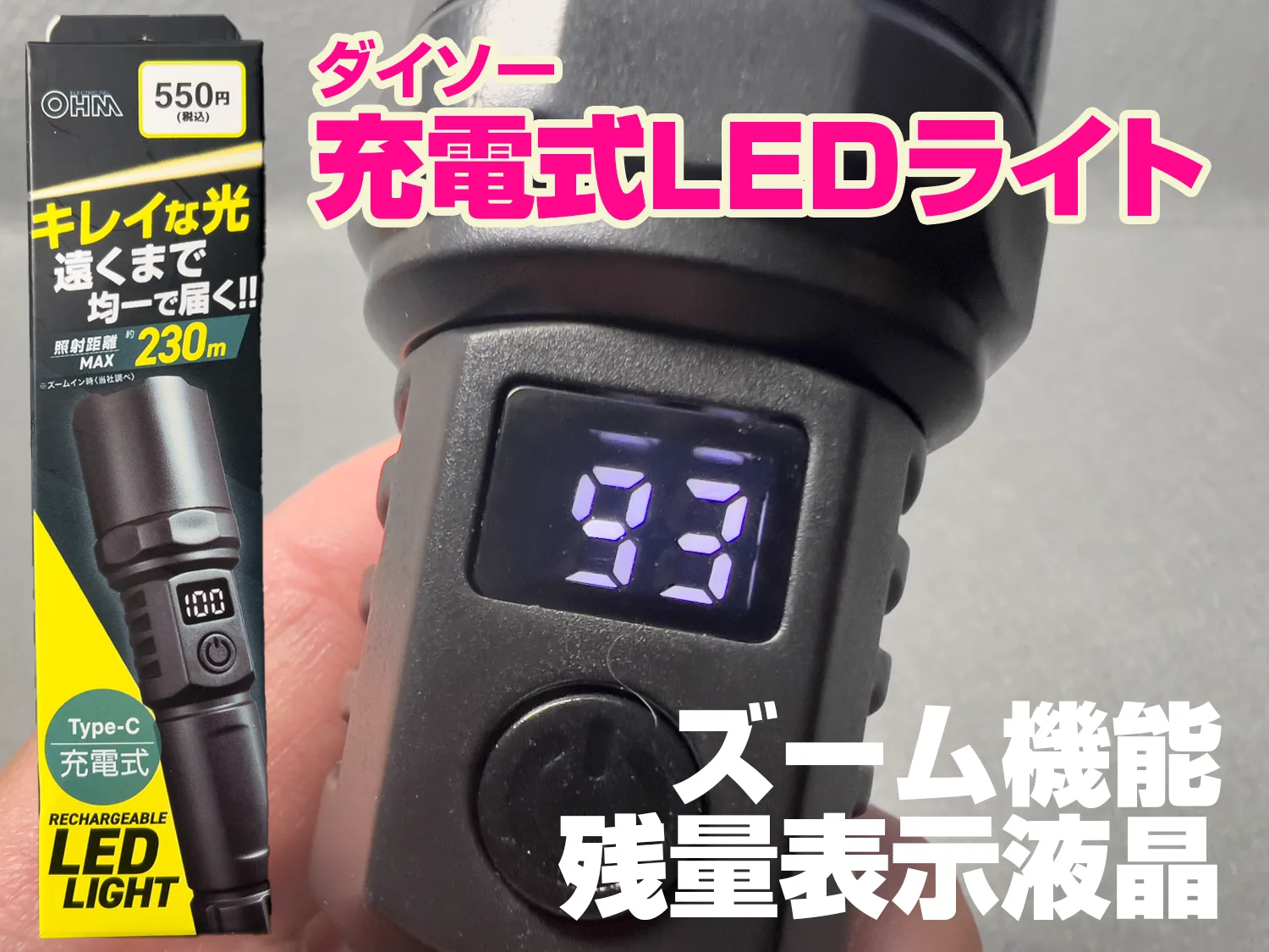 かう照射距離なんと230m!! ダイソー新製品「充電式LEDライト」がすごい 残量液晶表示・Type-C充電・ズーム照射 人気形状 ダイソーの新製品「充電式LEDライト」は、230mの照射距離、USB Type-C充電、液晶残量表示機能を備えた実用的な... 2025.09.15かう